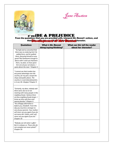 Pride And Prejudice Mrs Bennet Teaching Resources