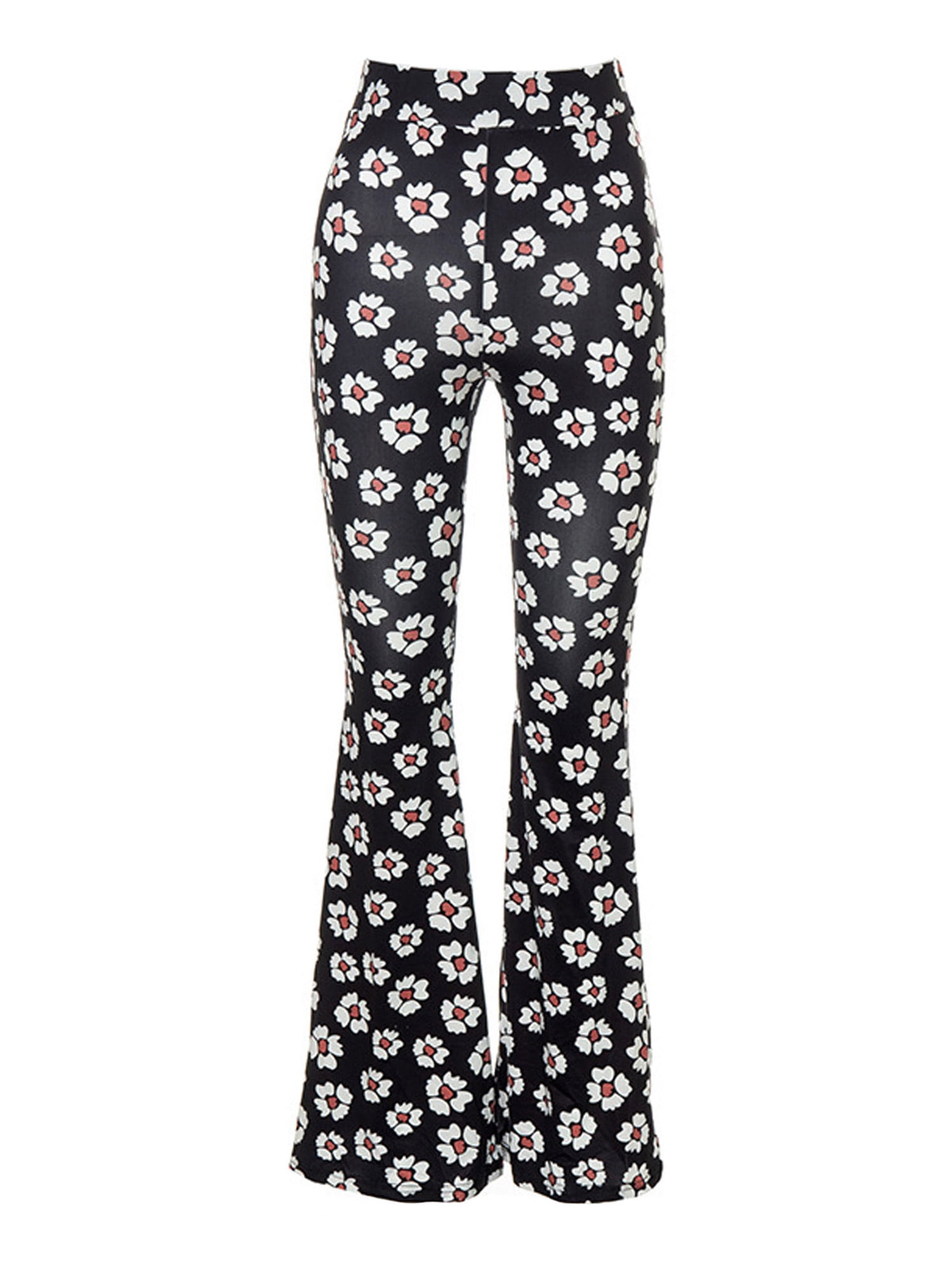 Gueuusu Women S Bell Bottoms Heart Floral Pattern High Waist Flare Pants Walmart Com